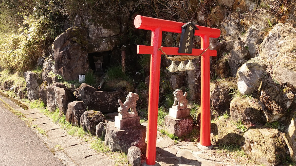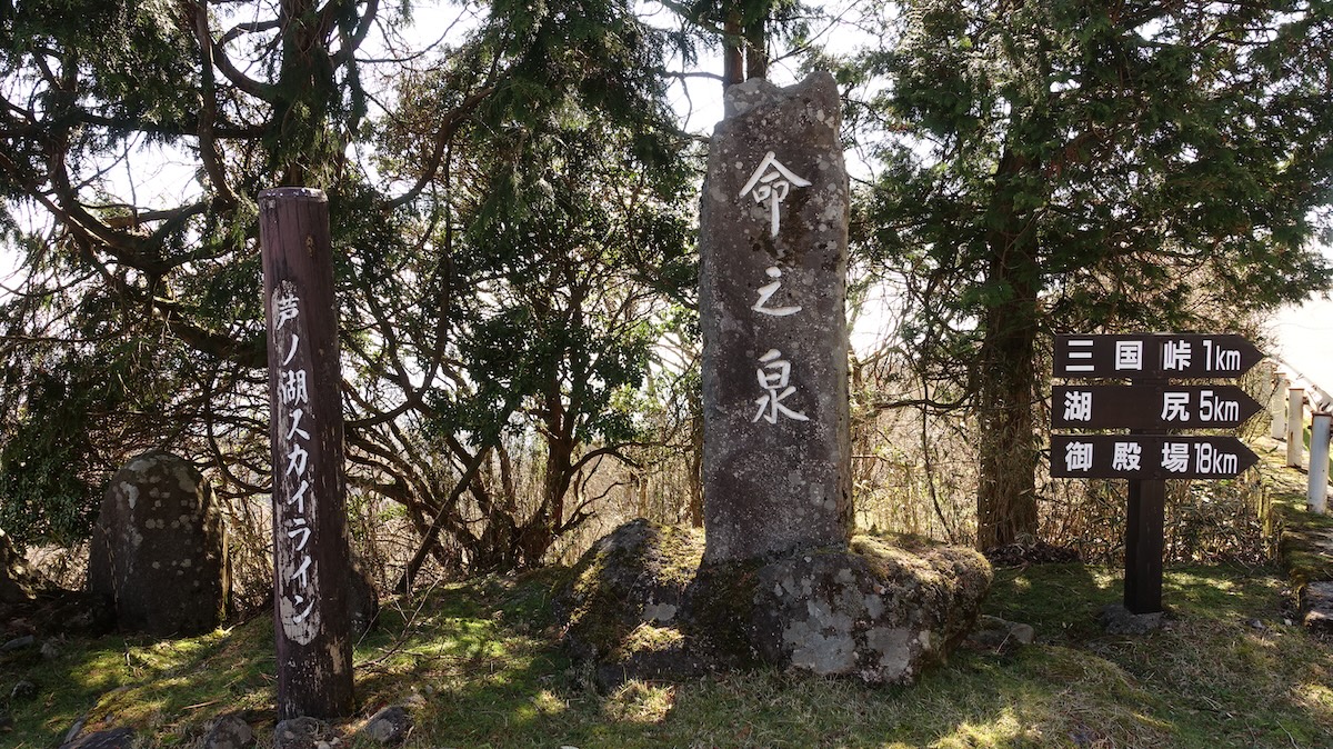 ワインディングを軽快に走った先には「命の泉」があります。1860年前に日本武尊が東征の途中、この泉で喉を潤したと。脚気に苦しんでいたのに、この水で元気になった言い伝えからここを通る旅人や木こり達は「ミコトの泉」として愛飲したんだと。でも今は飲料適してません。ご注意を。