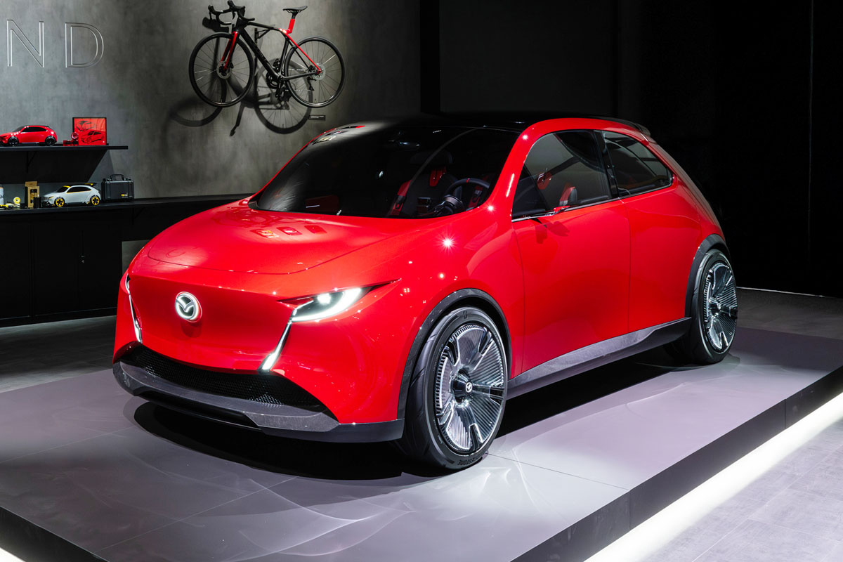 「VISION X-COMPACT」は、人の感覚をデジタル化した「人体・感性モデル」と共感型AIの融合で、人とクルマの絆がさらに深まることを目指したモデルで、次世代のマツダ2を想定したデザイン・スタディモデルだ。