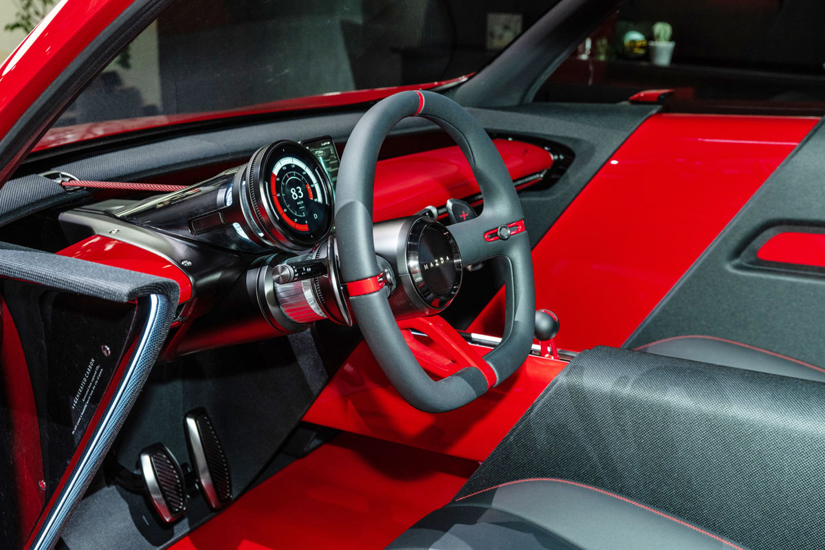 さらに、ロータリーエンジンの燃料は微細な藻類由来のバイオ・カーボンニュートラル燃料を使用し、マツダ独自のCO2回収技術「Mazda Mobile Carbon Capture」の組み合わせで、走るほどに大気中のCO2を削減できるとしている。