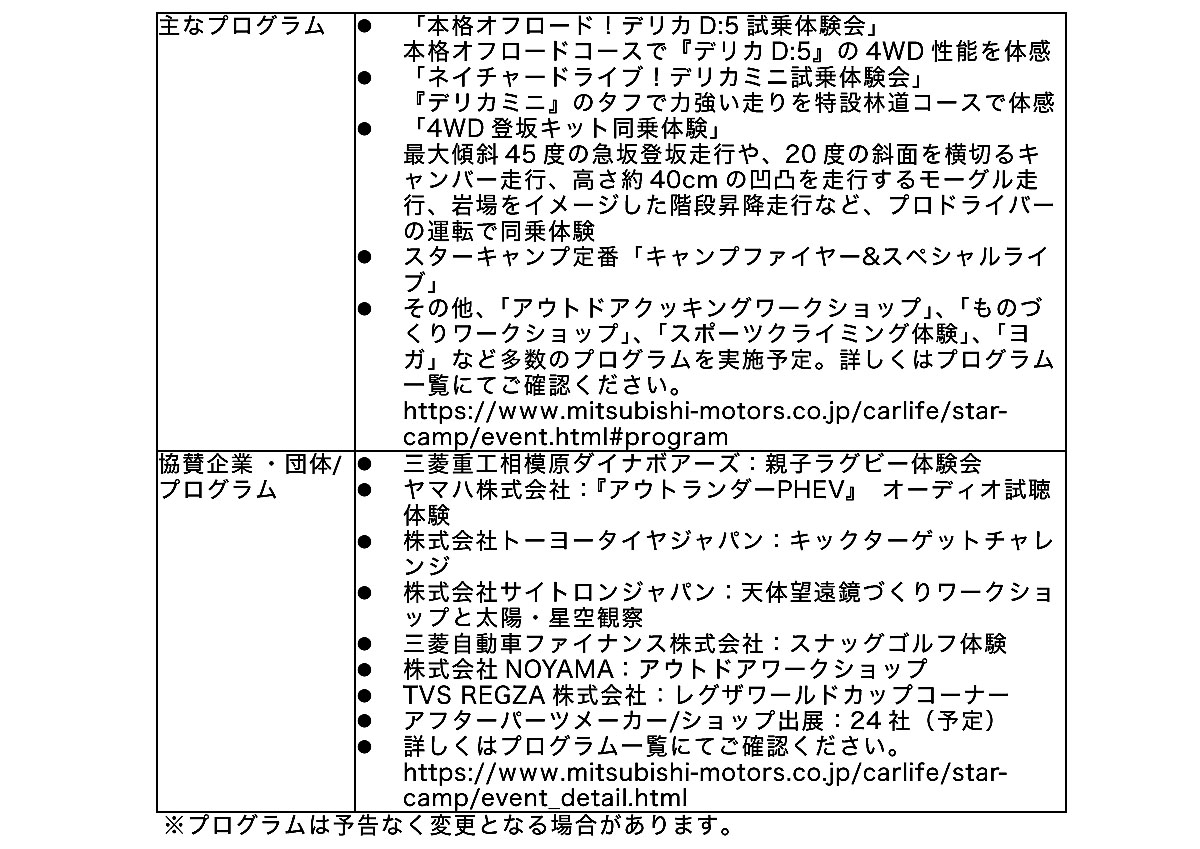 スターキャンプWEBサイト:https://www.mitsubishi-motors.co.jp/carlife/star-camp/