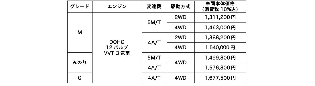 機能面では、ぬかるみ脱出アシストを「みのり」の5速MTモデルにも新たに採用し、デフロック機構との組み合わせで雪道やぬかるみなどでタイヤが空転した際でもスムーズな発進ができるようになっている。