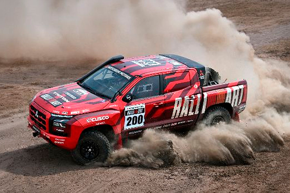チーム三菱ラリーアートは2025年、動力性能を強化して悪路走破性にも磨きをかけた「トライトン」の3台体制で出場。エースドライバーのチャヤポン・ヨーター選手はレグ3で総合首位に躍り出ると、そのまま首位を維持し、2位と約7分差という接戦を制して、3年ぶり2度目の総合優勝を果たしている。