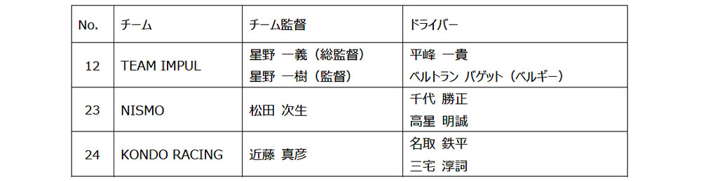 なお、NISMOのチーム監督には松田次生が就任する。
