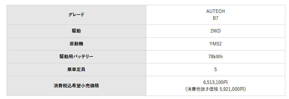 そして、エントリーグレードとなる「B5」は2026年2月の発表が予定されており、CEV補助金を差し引いた購入者の実質負担額が、350万円程度となる価格となることが予想されている。