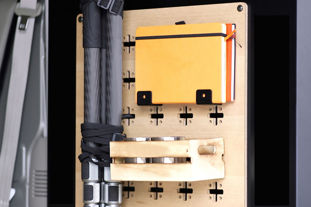 ラックやボードはオリジナルの有孔デザインとし、専用ブラケットの取付け位置や向きを柔軟に調整することができ、多目的に使用することができる。また、市販品の汎用フックなどの取付けも可能で、趣味やレジャーのほか配達や移動販売など、幅広い用途に合わせて荷室をアレンジすることが可能だ。