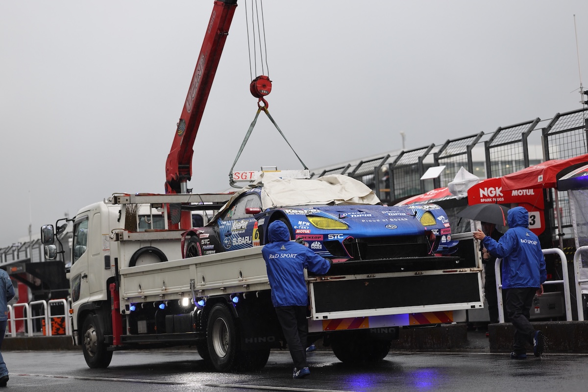 午後2時45分、公式予選が始まる。BRZ GT300はA組で井口卓人がアタックを担当。天候は、ぽつりぽつりと雨が降りはじめた。ドライ路面のうちにアタックを終わらせておきたい。それでも井口は丁寧にタイヤのウォームアップを行ない、4ラップ目に1分44秒514で2位のタイムを計測した。さらにタイムアップを狙い5周目に入ると井口の無線で「エンジンからすごい異音が出ている」と発せられた直後「エンジンが壊れた」と絶叫が飛び込んだ。