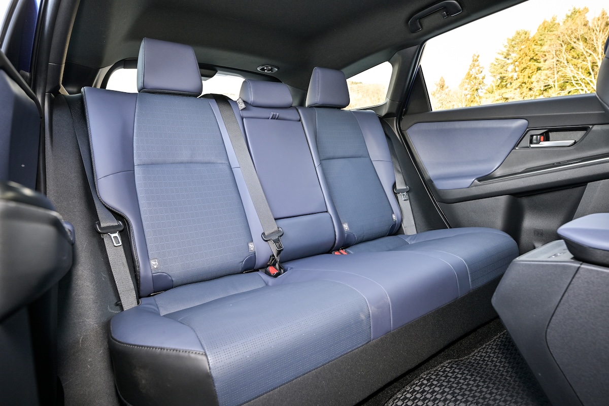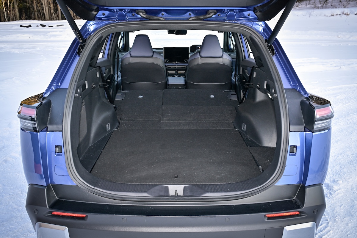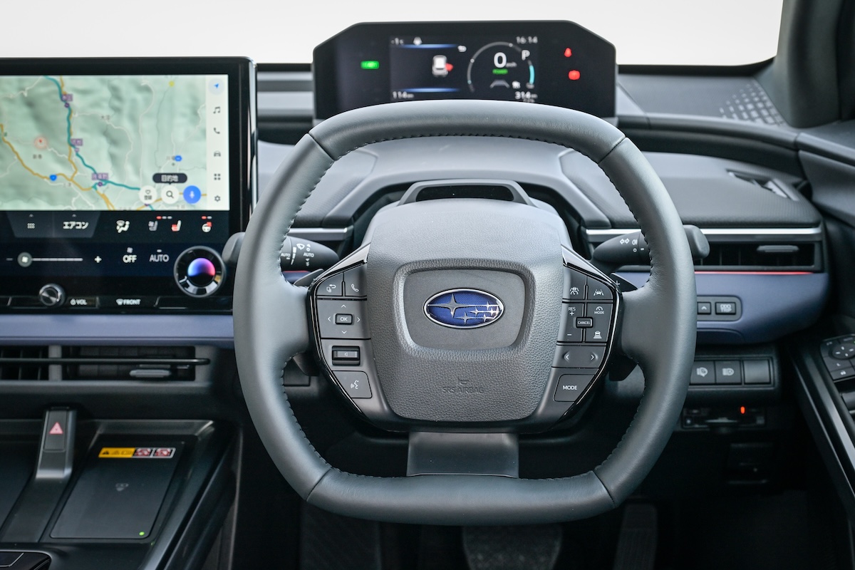 パワーユニットを見てみよう。航続距離は700km以上とし、280kW(380ps)のAWDでWRXよりもパワフルなユニットを搭載している。駆動方式はFWDとAWDを用意し、バッテリー容量は74.7kWh、フロントモータは167kWで、リヤモータも同じモータを搭載している。ソルテラのAWDはリヤモータが88kWと小さかったが、車格をあげて出力も上げたわけだ。