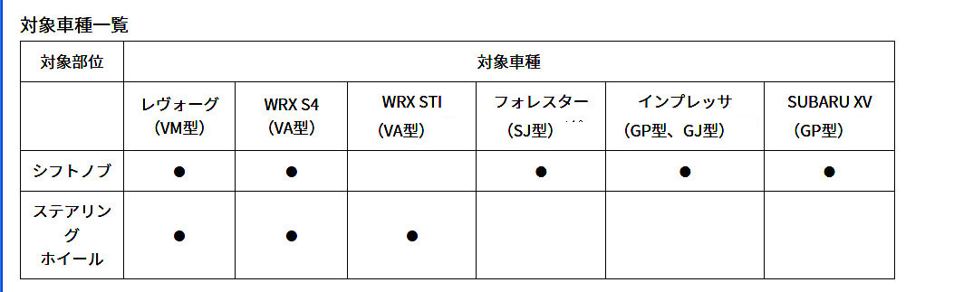 表皮にウルトラスエードを用いたステアリングホイールやシフトノブへ交換。カラーはダークネイビー、バーガンディの2色を設定。アイサイトやエアバッグ、オーディオ類のスイッチなどの純正ステアリングホイールとしての機能を維持しながら、インテリアの質感を高め、コーディネートの幅を拡大する。