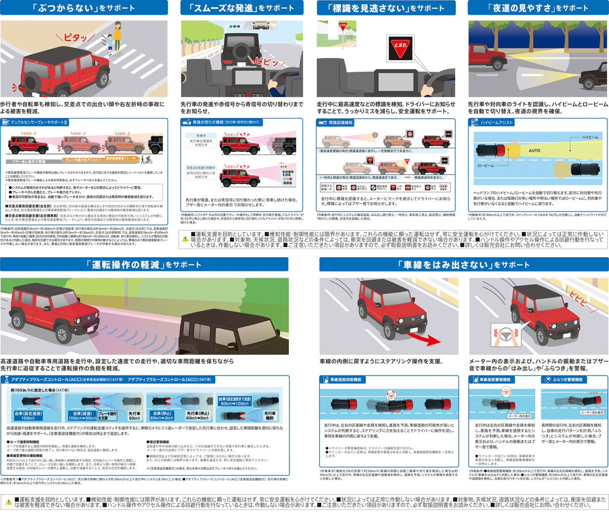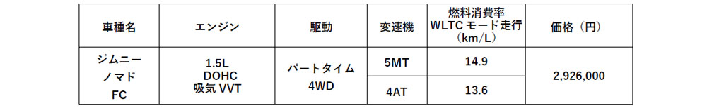 なお、「ジムニー ノマド」は、経済産業省や国土交通省などが普及を推進する「サポカーS ワイド」、国土交通省による「ペダル踏み間違い急発進抑制装置(PMPD)認定車」に該当している。