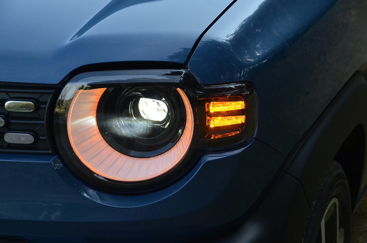 そのバンパーもボディと同色とすることで、より大きく見えるようになり、また角張った四角の角を丸めた優しい長方形を随所に採用することで、印象を柔らかくしている。そして目力の強いヘッドライト&ポジションランプのデザインに変更し、またグリルにはホットスタンプのメッキのドットパターンで遊びも表現している。