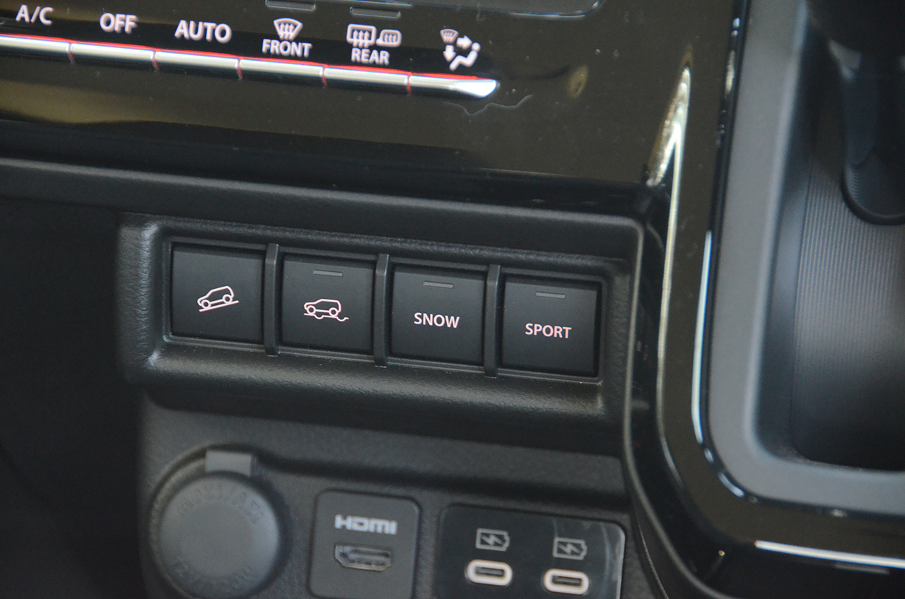 新型クロスビーには2WDと4WDが用意され、走行モードも選択できるようになった。また電動パーキングブレーキも上級モデルには設定され、ステアリングヒーターも新規に設定されている。