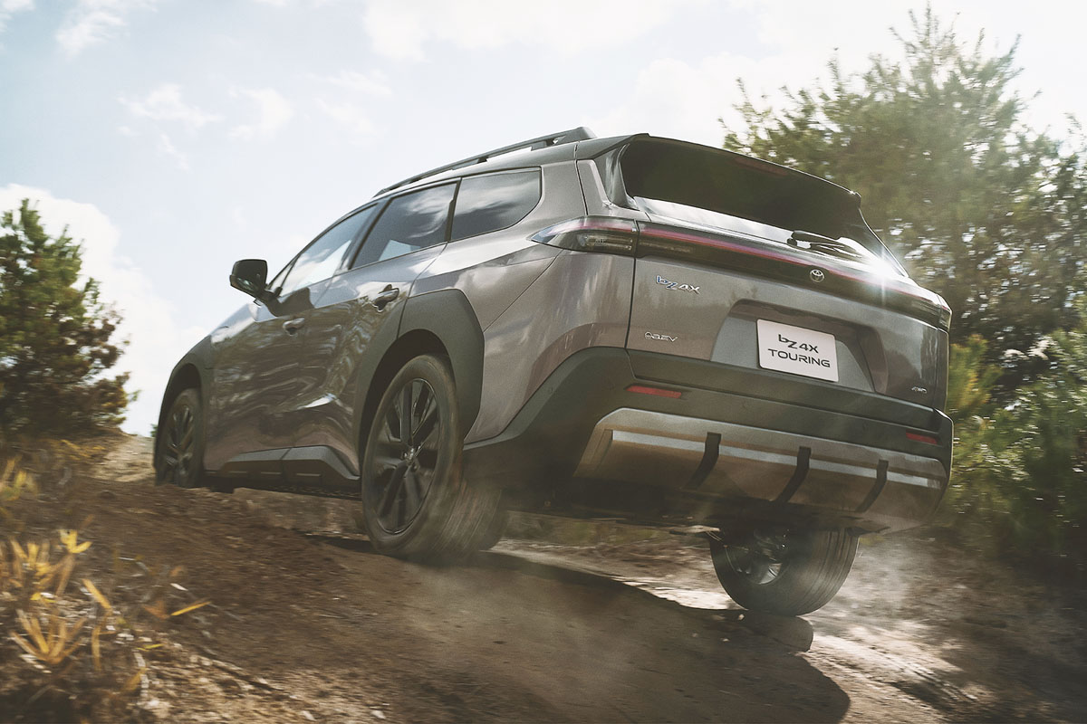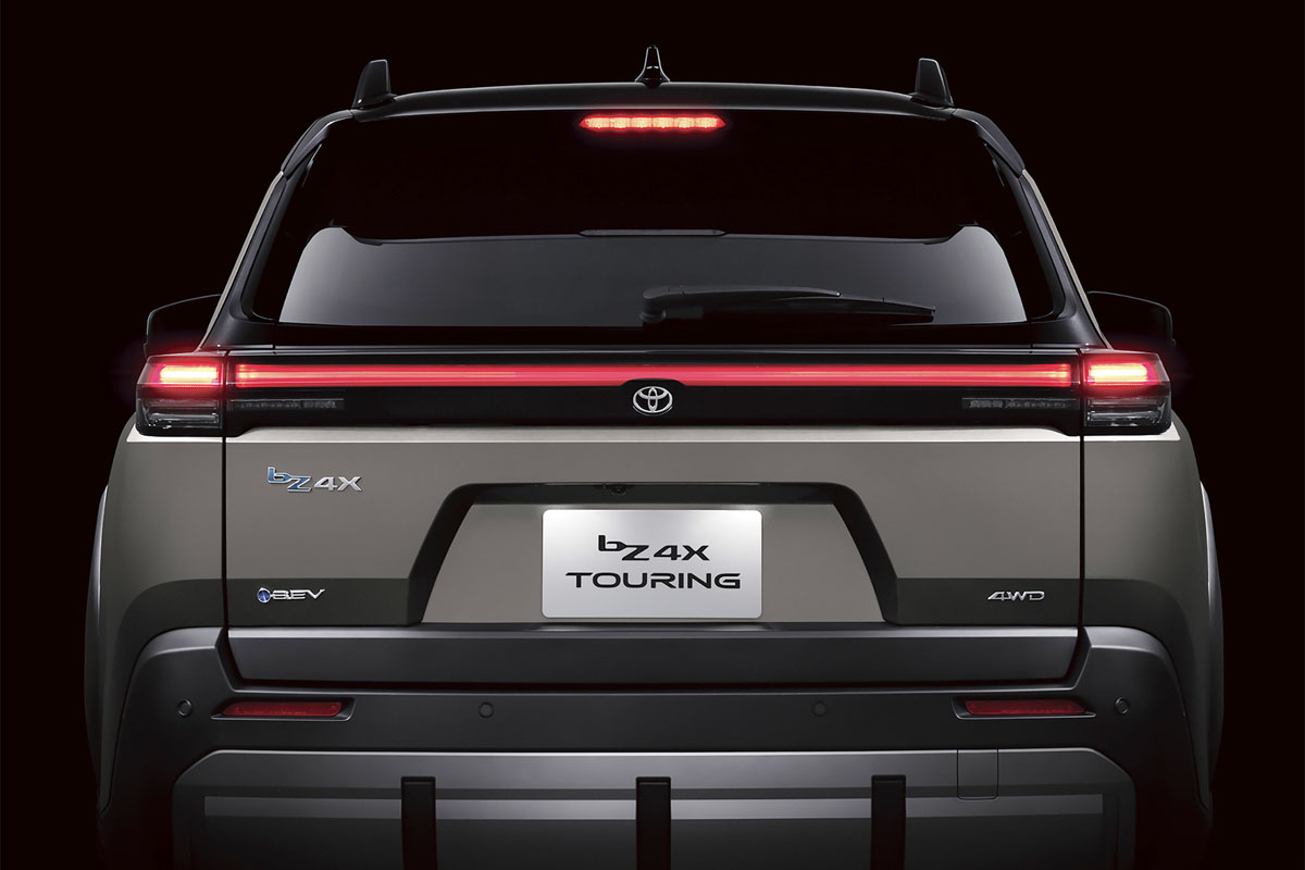 デザインは、「bZ4X」をベースにしながらバックドア中央から両サイドへと横一文字に伸びる、力強い黒基調のLEDリヤコンビネーションランプ(テール・ストップ・バックアップ・ターン)を採用している。