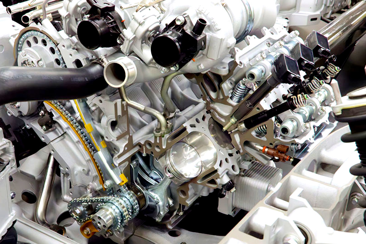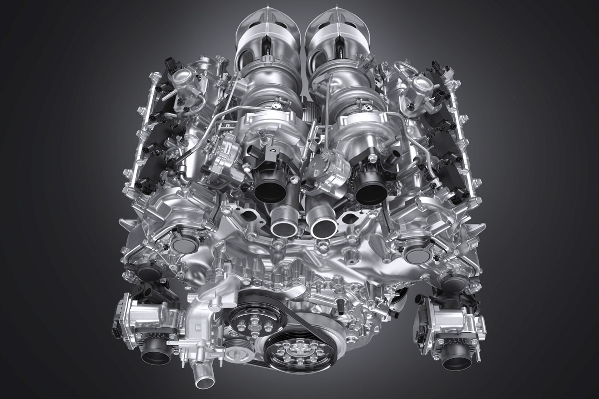 ボア×ストローク:87.5×83.1mmのショートストロークで、エンジン全高の低減に加え、バンク内に排気マニホールドをレイアウトし2個のターボを配置した強豪モデルと同様のV型ホット・インサイド形式としている。また潤滑はドライサンプ式とし、オイルパンは超薄型化している。