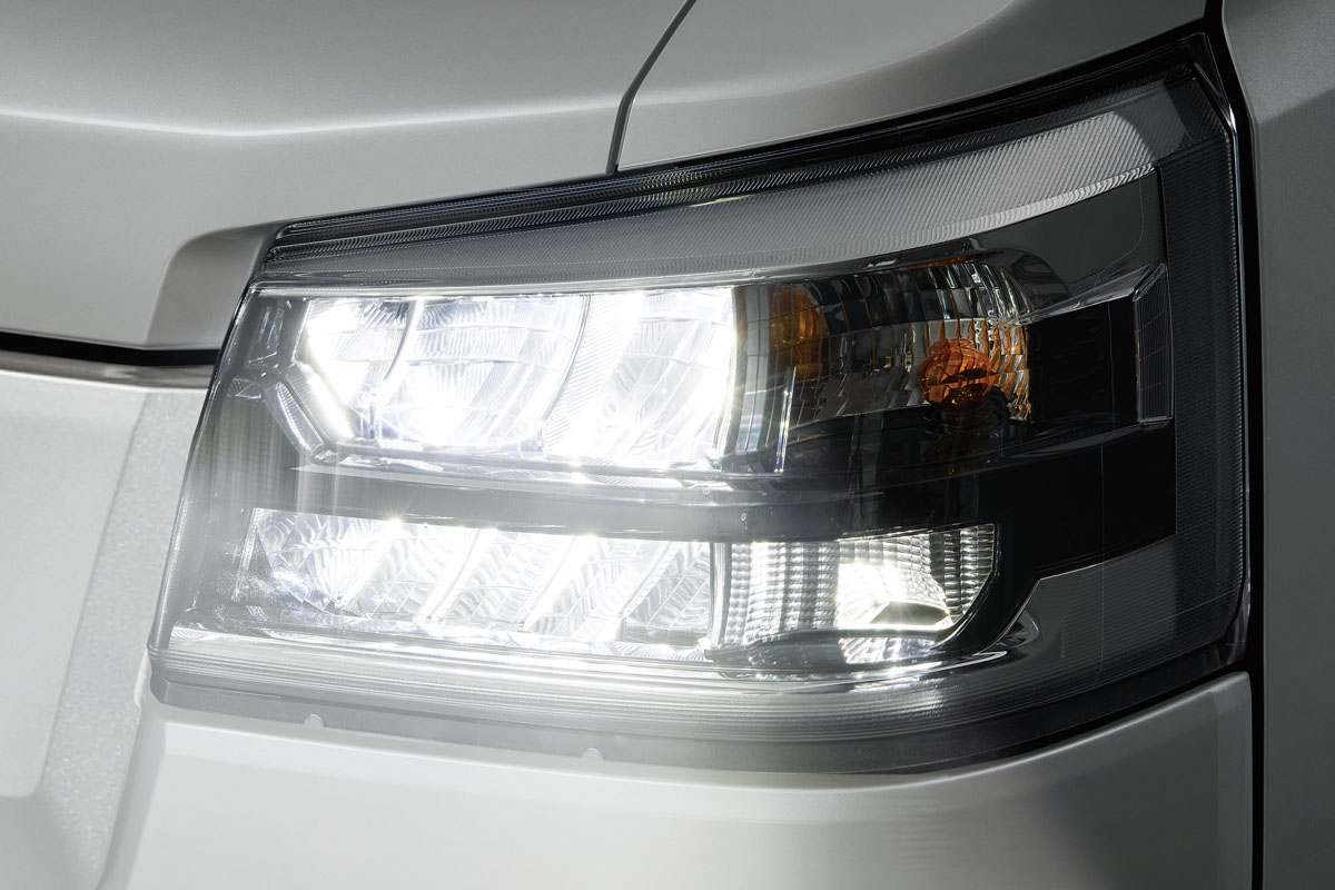 また、「エクストラ」グレードは、「LEDパック」の「LEDヘッドライト(ロー/ハイビーム・オートレベリング機能・LEDクリアランスランプ・オートライト付)」、「ADB(アダプティブドライビングビーム)」、「サイドビューランプ」を標準装備としている。