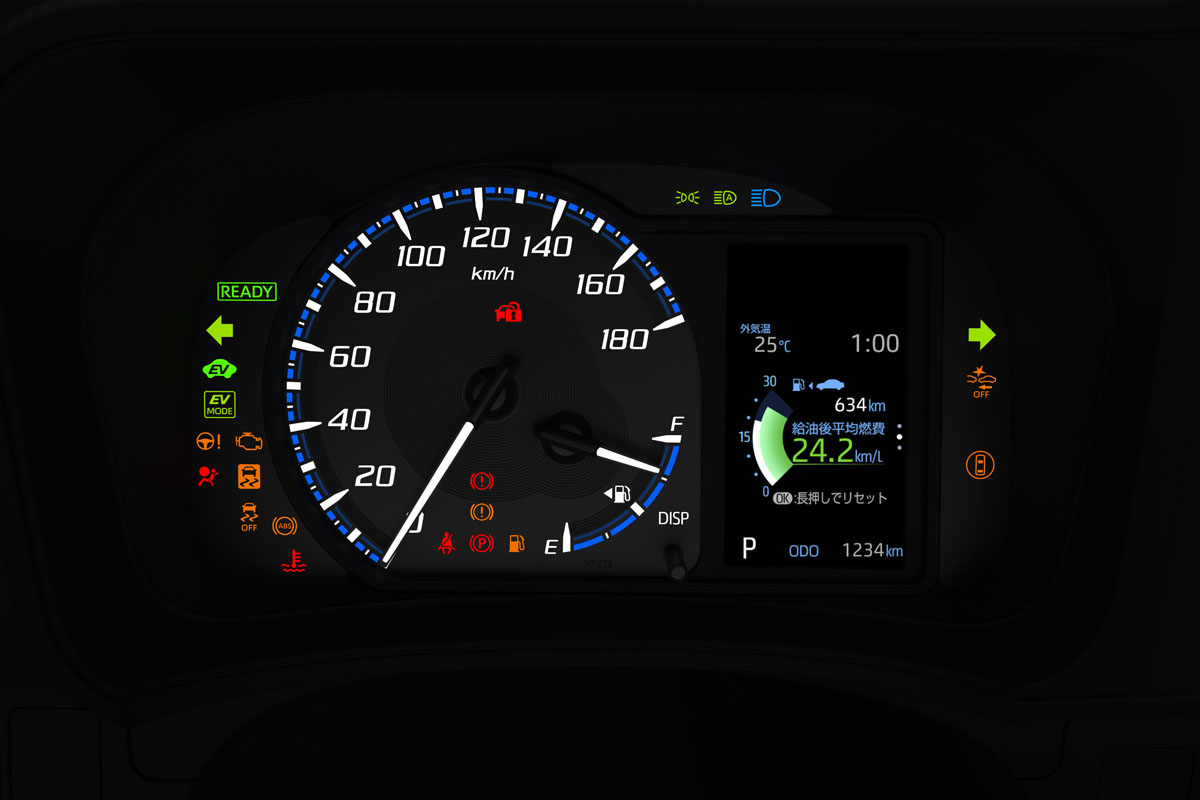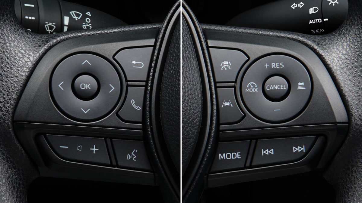 今回の一部改良では、アナログメーター+4.2インチTFTカラーマルチインフォメーションディスプレイとともに、ステアリングスイッチ(マルチインフォメーションディスプレイ/オーディオ/レーダークルーズコントロール/レーントレーシングアシスト/ハンズフリー/音声認識)を標準装備とした。