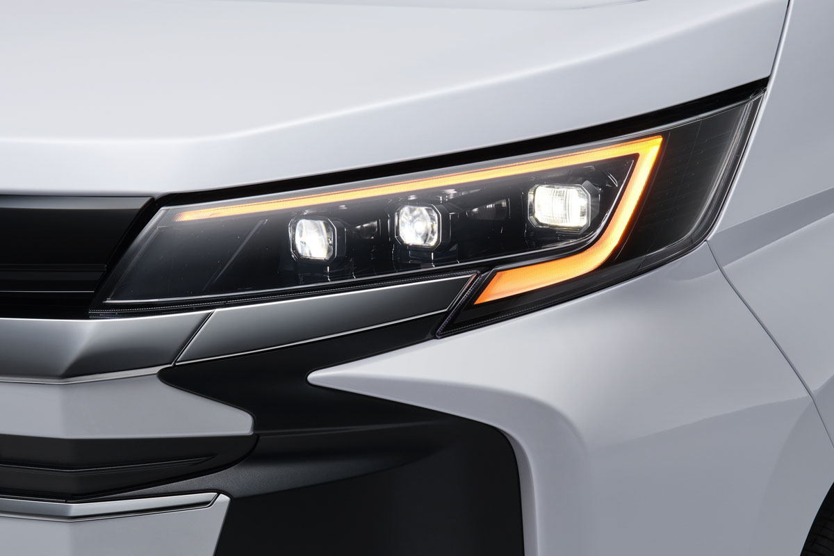ノアはプロジェクター式LEDヘッドライト(マニュアルレベリング機能付き)+LEDターンランプ+LEDクリアランスランプを全車に標準装備とし、全グレードともフロントグリルのメッキ部位をメッキモール+ボディカラー同色に変更している。