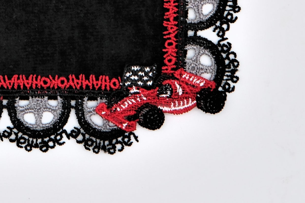 横浜ゴム 地元「近沢レース店」とコラボしたハンカチ「Lace」×「Race」なのだ!【東京オートサロン2026】