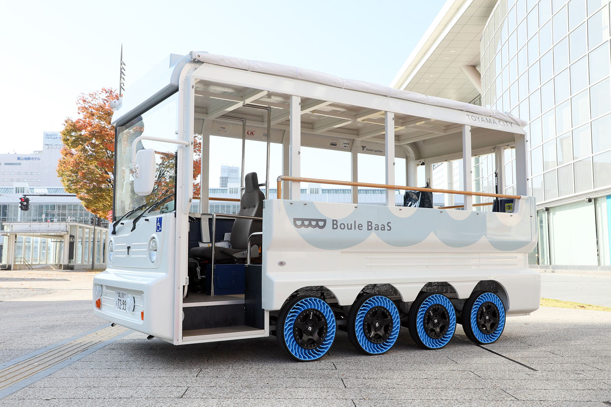 ブリヂストンと富山市は2025年11月10日、富山市が運営するバスタイプのグリーンスローモビリティに空気充填の要らない次世代タイヤ「AirFree(エアフリー)」を装着し、公道での日本初となる実証実験を11月8日から開始したと発表した。
