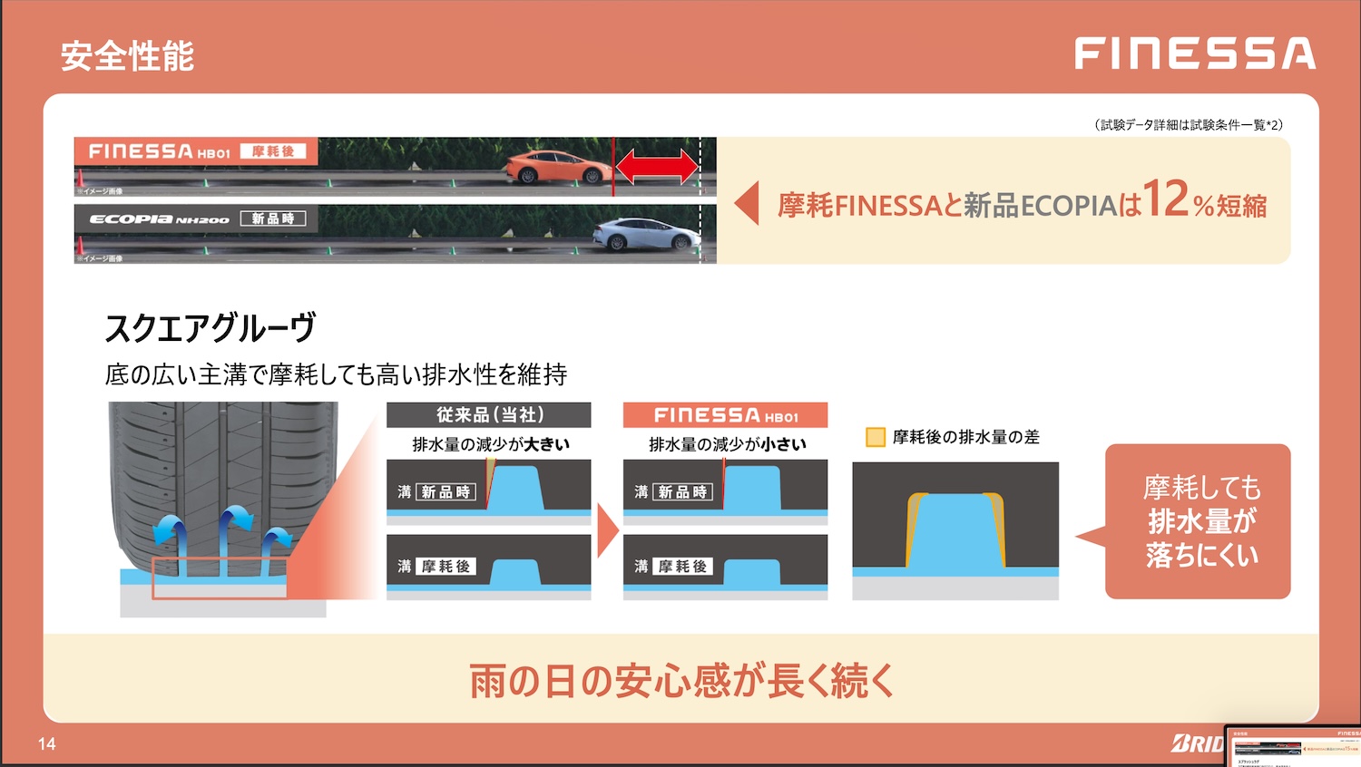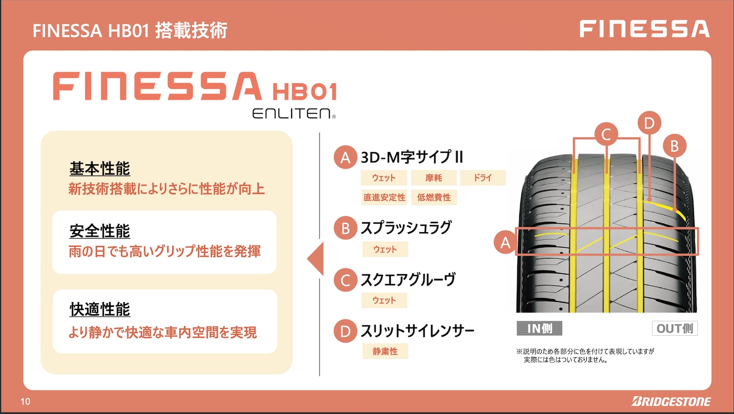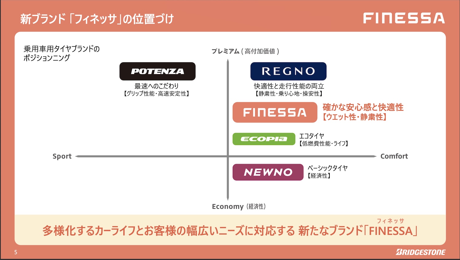 その新商品は「フィネッサHB01」というタイヤ名で、FINEとSAFETYから作られた造語だ。快適で心地良いファインと安全性能の双方をタイヤのコンセプトにしているスタンダードタイヤに位置付けられている。