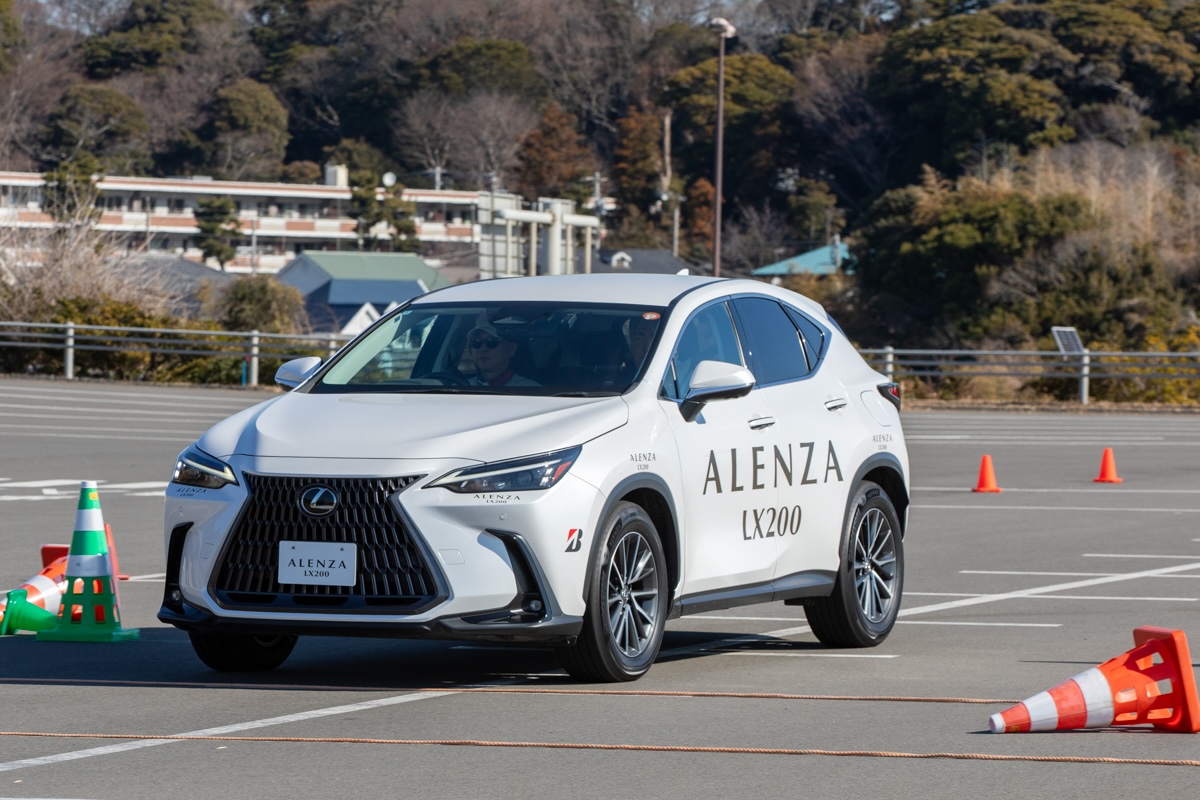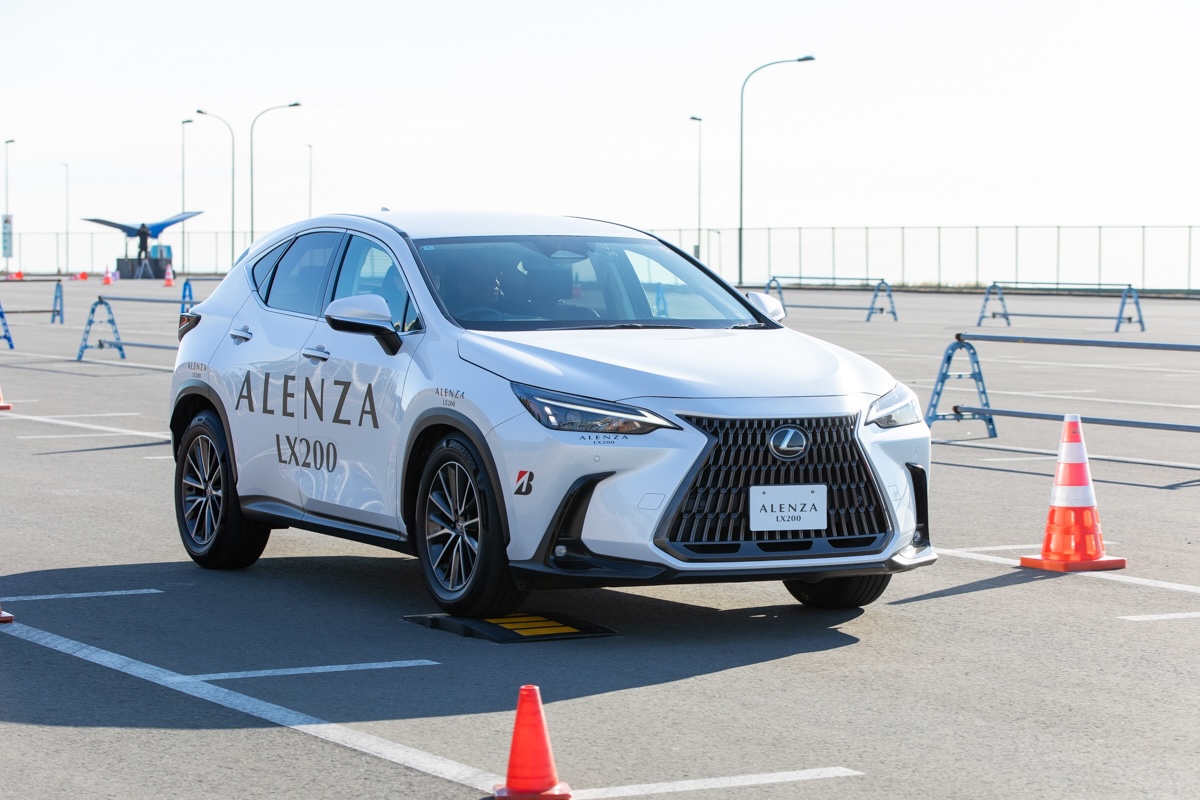 そのアレンザLX200をテストする環境があったのでお伝えしよう。まずは専用のテストコースで、車両のふらつきや、応答性、リヤの追従性、揺れや振動の収束、そして直進安定性をみることができるコースで試乗した。車両はレクサスNX350hとハリアーを使ってLX100との違いも体験することができた。