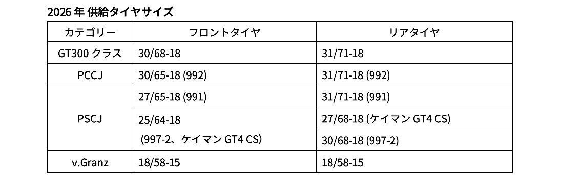2026年シーズンからオフィシャルタイヤサプライヤーとしてv.Granzにタイヤを供給する。
