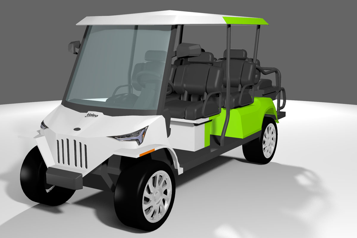 リジッドアクスルに一体化したヴァレオ48V駆動システムのパフォーマンスを体感できるデモカー。リジッドアクスルと呼ばれる車体の構造部品に電動モーターやギアボックスなどの駆動系部品をモジュールとして組み込むことにより、ゴルフカートや小型ユーティリティビークルなどの小型EV向けのアフォーダブルでシンプルかつ堅牢な電動化ソリューションだ。