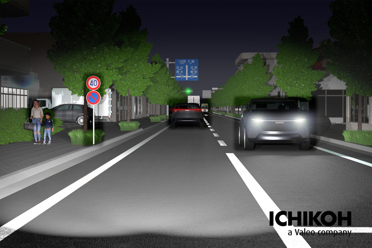 さらに、ロービーム照射範囲を高解像度化することで、レーンガイドやナビゲーション表示を路面に投射することによる運転サポートが可能になり、将来的には自動運転時に交通利用者への円滑なコミュニケーションにも活用できると期待される。