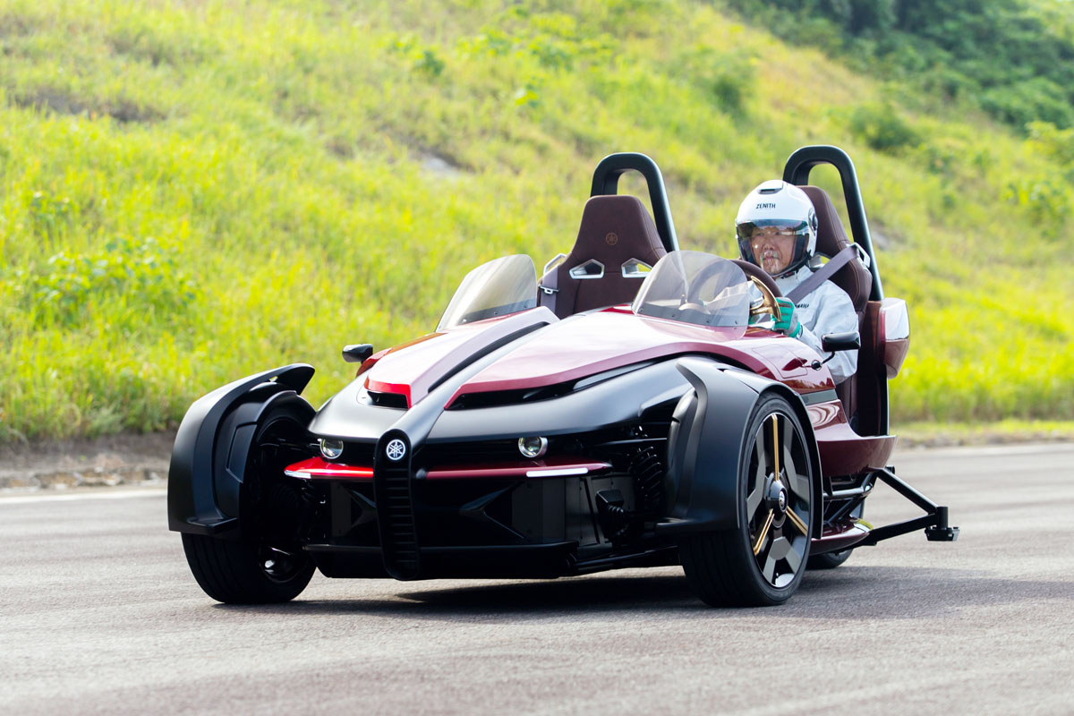 TRICERA proto(トライセラ プロト:参考出展車)は、新たなドライビングプレジャーを提案する3輪パッケージのフルオープンEVだ。感性に訴える刺激的な旋回性能と、新感覚の操縦感を兼ね備えた3輪手動操舵(3WS)の実走コンセプトモデルである。